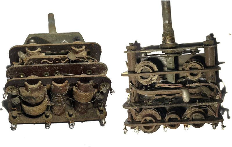 Restauration : Le poste est incomplet. Il manque le carton arrière, la lampe cadran et son support, la lampe redresseuse (CY2), le cordon secteur. L’examen visuel révèle d’autres problèmes. Sont présentes deux lampes de type ECH3 ce qui n’est pas cohérent. La membrane du haut-parleur est entièrement décollée. Un des réglages d’un transfo MF est cassé. Les condensateurs de découplage ont une valeur de 20 nF ce qui paraît faible.