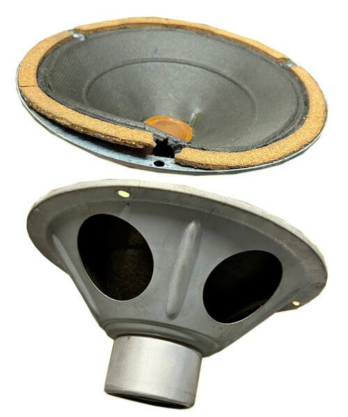 Le haut-parleur dont la membrane est déchirée partiellement n' a pas pu être sauvée. Le modèle en remplacement est différent, mais de meilleure qualité.