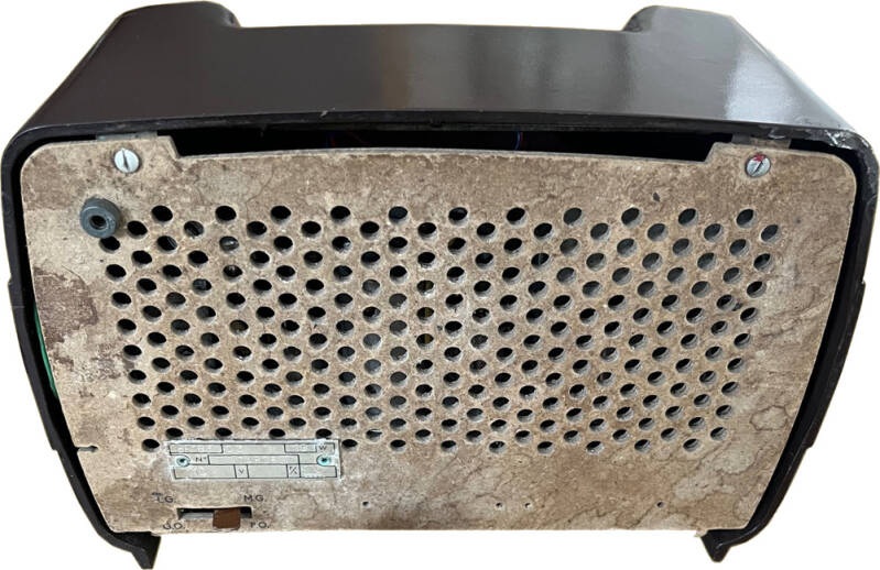 Le poste a été récupéré partiellement démonté mais presque complet. Sa remise en état a nécessité les opérations suivantes : remplacement de la ficelle d’entrainement du CV - remise en place d’un condensateur de filtrage, absent du châssis – remplacement de quelques condensateurs papiers.