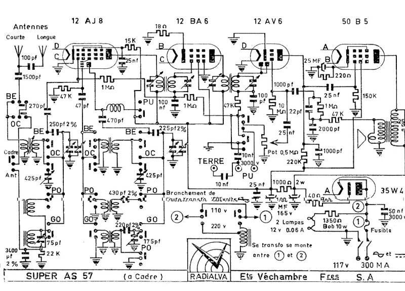 Le « RADIALVA SUPER AS 57 » voit le jour en 1956. Petit poste tous courants il fonctionne en 110 volts ou en 220 volts moyennant l’installation d’un autotransformateur à un emplacement réservé du châssis. Équipé de 5 lampes, il dispose de 5 gammes d’ondes (PO-GO et 3 OC). Les circuits oscillants d’accord antenne et de l’oscillateur local sont montés sur la face supérieure du châssis et protégés chacun par un blindage.